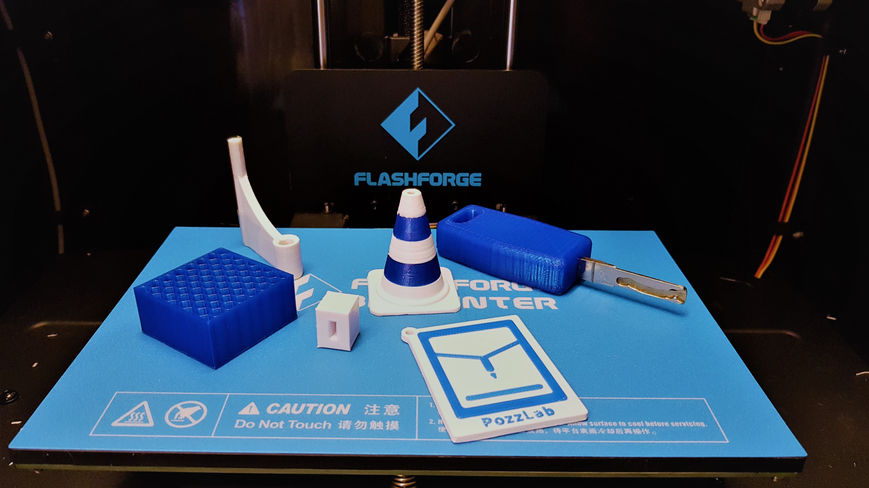 In PozzLab utilizziamo la tecnologia FDM (fused deposition modeling); essa consiste nel fondere un filamento plastico tramite un estrusore che ne riduce notevolmente il diametro e lo deposita, secondo il progetto CAD, in strati sovrapposti che portano alla realizzazione del modello 3D.